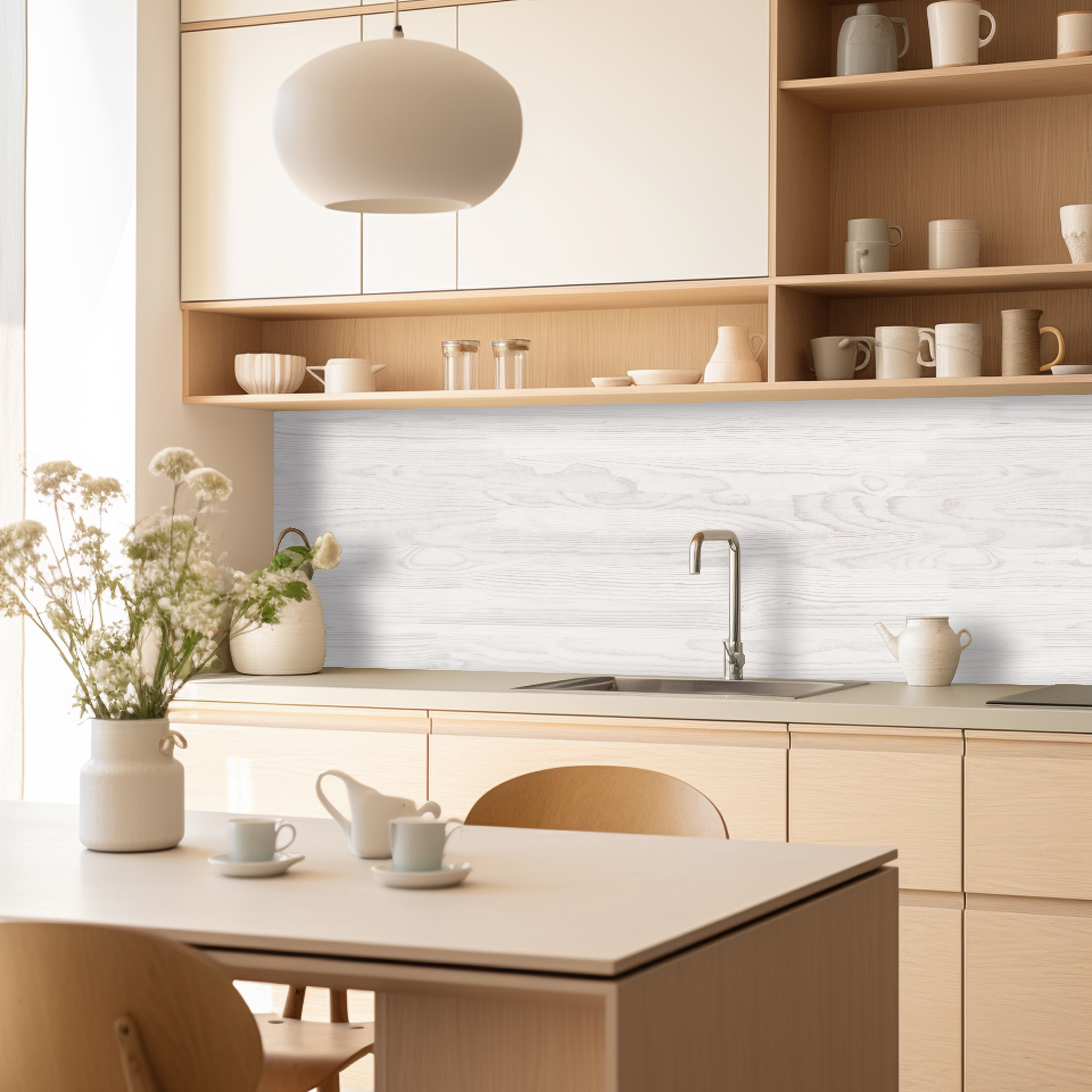 Кухонный фартук — элемент декора кухни, предназначенный для защиты стен от загрязнений. Преимущества: не боится влаги; высокая износостойкость; лёгкий; удобный при монтаже; устойчив к выцветанию и износу; удобен при транспортировке, складировании и хранении; Уход: Любое моющее неабразивное средство, например, то, которое используется для мойки посуды, или мыло. В большинстве случаев достаточно протирать поверхность влажной тканью.