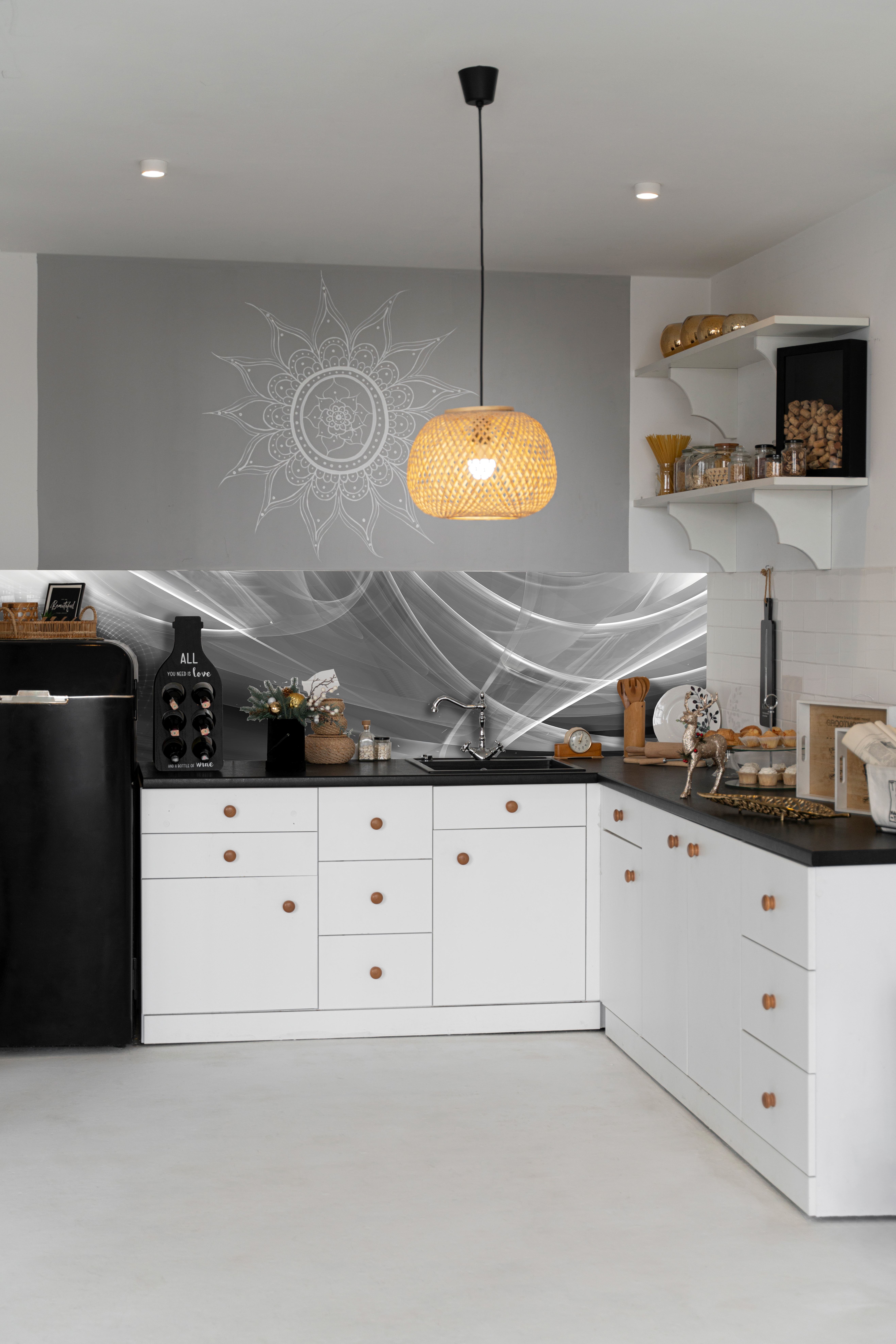 Кухонный фартук — элемент декора кухни, предназначенный для защиты стен от загрязнений. Преимущества: не боится влаги; высокая износостойкость; лёгкий; удобный при монтаже; устойчив к выцветанию и износу; удобен при транспортировке, складировании и хранении; Уход: Любое моющее неабразивное средство, например, то, которое используется для мойки посуды, или мыло. В большинстве случаев достаточно протирать поверхность влажной тканью.