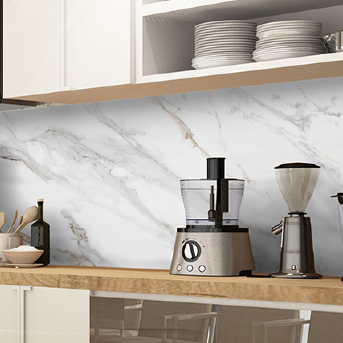 Кухонный фартук — элемент декора кухни, предназначенный для защиты стен от загрязнений. Преимущества: не боится влаги; высокая износостойкость; лёгкий; удобный при монтаже; устойчив к выцветанию и износу; удобен при транспортировке, складировании и хранении; Уход: Любое моющее неабразивное средство, например, то, которое используется для мойки посуды, или мыло. В большинстве случаев достаточно протирать поверхность влажной тканью.